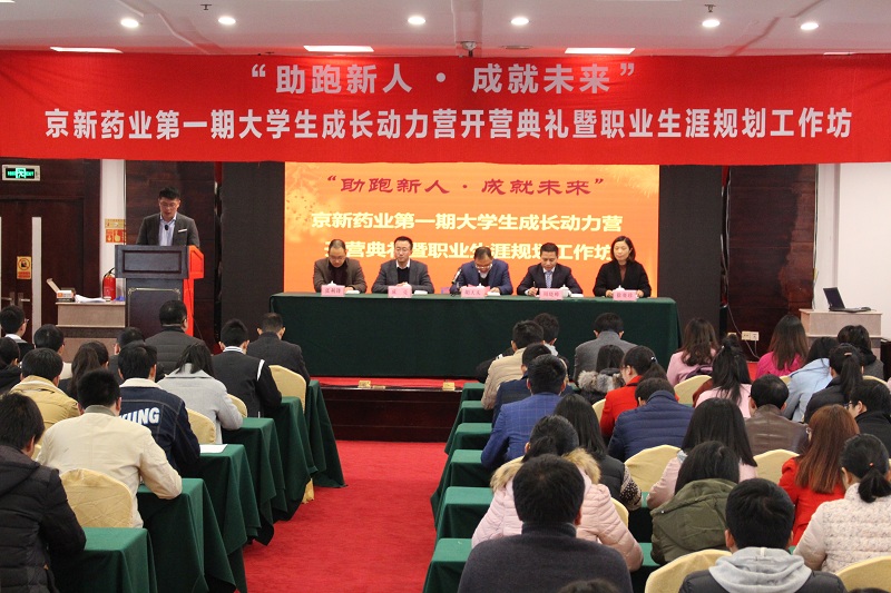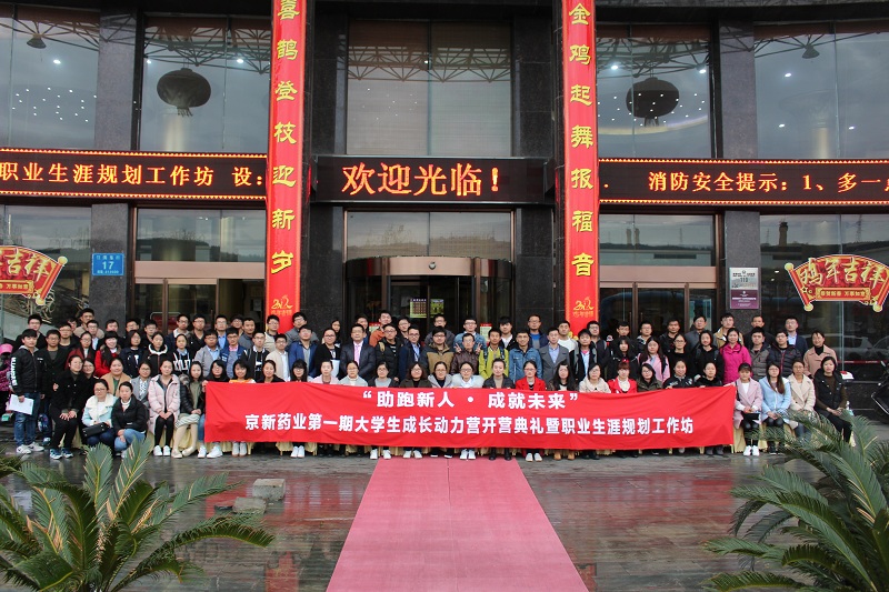 3月18日,公司第一期“助跑新人  成绩未来”大学生生长动力营在新昌鹤群旅馆举行开营仪式,公司副总司理胡天庆、人力资源总监周晓峰、研究院副院长成亮、上虞腾博tengbo9885官网副总司理徐赛珍、药品制造公司副总司理张利锋及公司15、16届全体大学生加入了本次仪式。